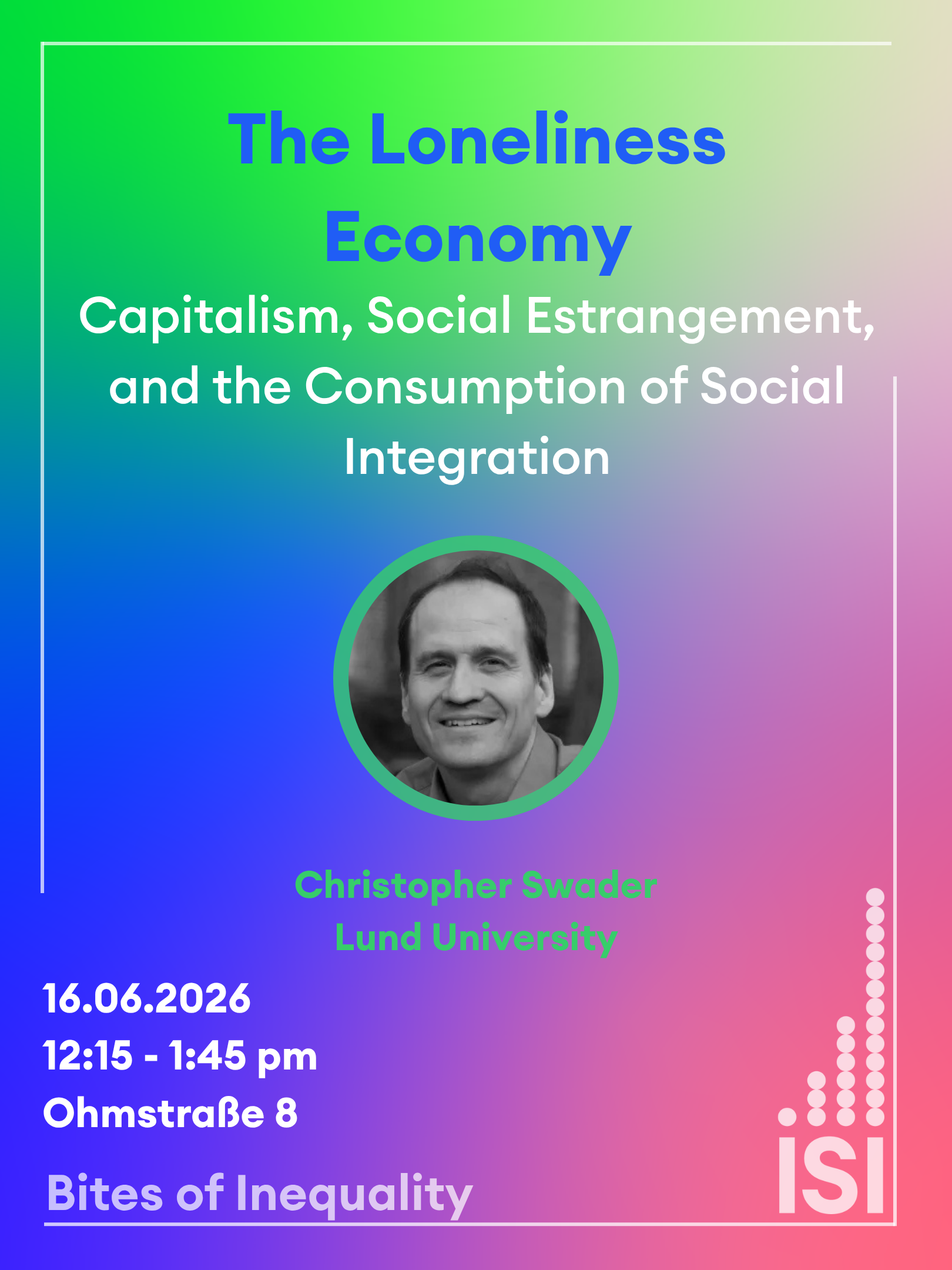 Bites of Inequality ist eine Mittags-Talkreihe des Instituts für Soziologie der LMU in Kooperation mit dem ISI, die Wissenschaft und Öffentlichkeit in einem offenen Format zusammenbringt. Im Mittelpunkt stehen aktuelle Forschungen zu sozialer Ungleichheit, vorgestellt und diskutiert in zugänglicher Form.